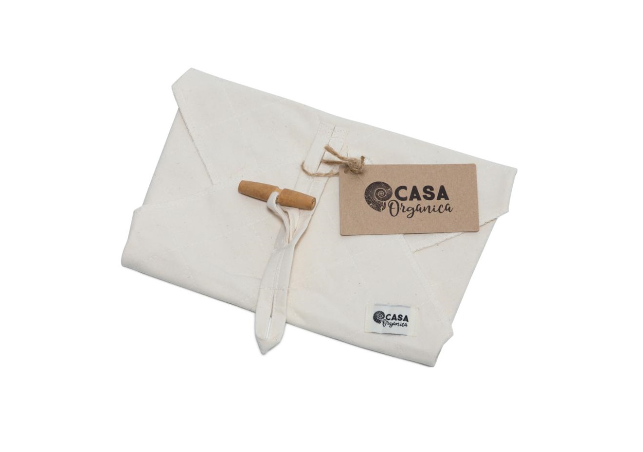 Kapsička na svačinu a prostírání v jednom – tak takhle šikovný je pratelný ubrousek z biobavlny. V rozloženém stavu má 32 x 32 cm, velikost složené kapsičky si můžete regulovat díky odstupňovanému zapínání na dřevěný knoflík. Vejde se vám tam pohodlně chléb, banán a něco sladkého na zakousnutí. Ubrousek je vyrobený z nebělené biobavlny bez plastové nepropustné úpravy, materiál schválil přímo Státní zdravotní ústav. Ubrousek má dvě prošité vrstvy hutné bavlněné látky, takže se nemusíte bát žádných nehod při přepravě svačiny nebo oběda :)